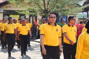 Sigli– portalsingkil.online. net. apolres Pidie, AKBP Jaka Mulyana, S.I.K., M.I.K., memimpin langsung apel pagi yang dilanjutkan dengan kegiatan olahraga bersama seluruh personel Polres Pidie di halaman Mapolres, Jumat (29/8/2025).