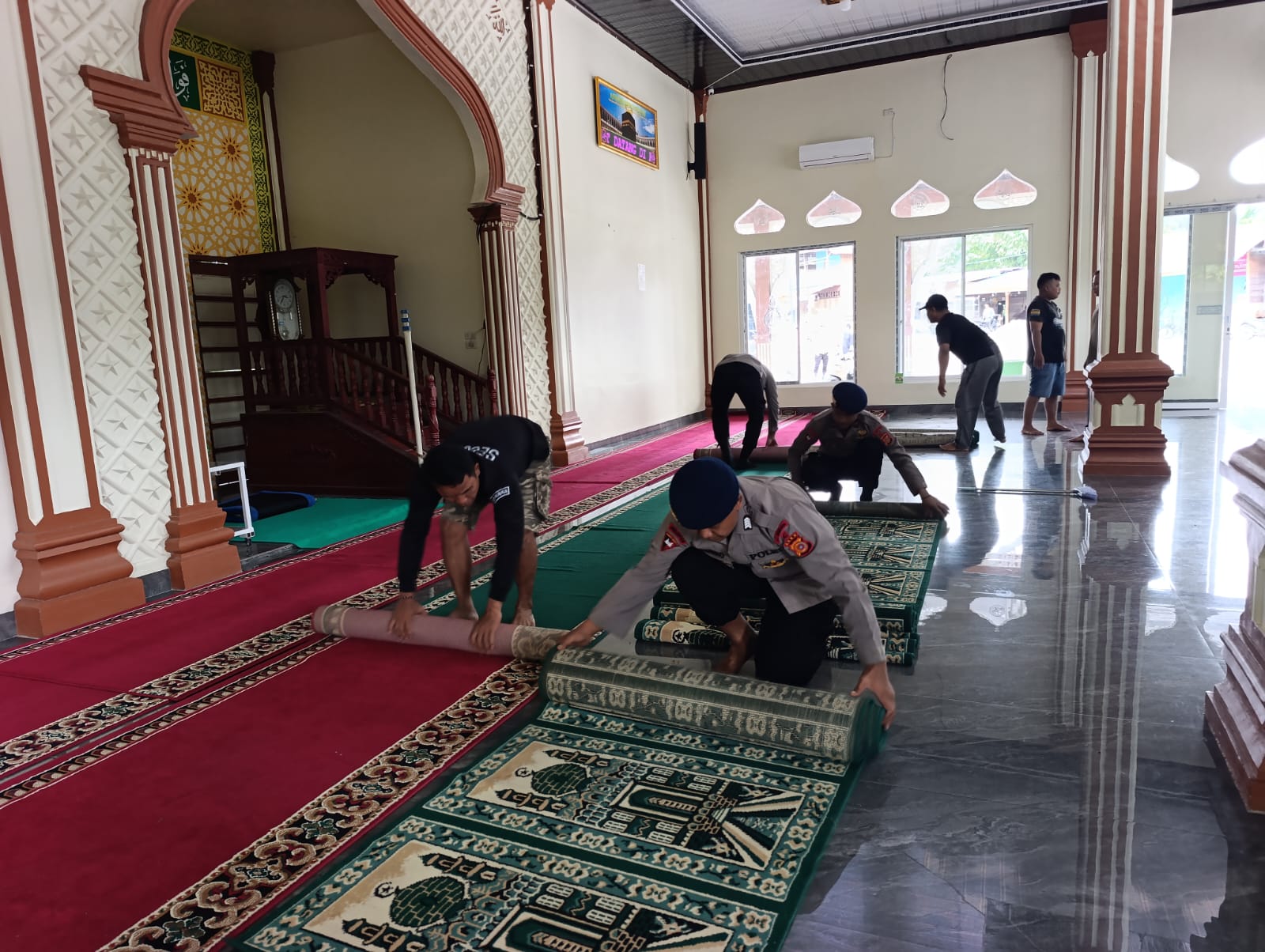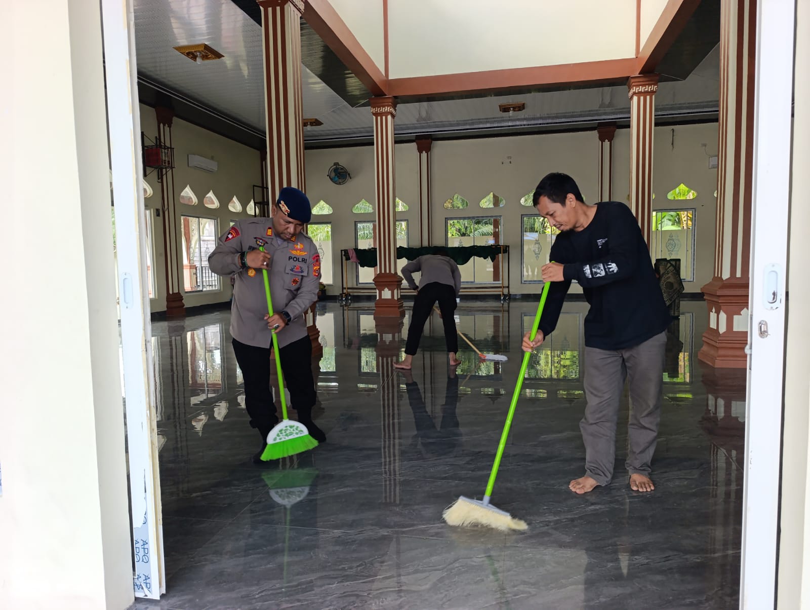 AKP Irwinsyah, S.H menambahkan dalam kegiatan kita bagi dalam pembersihan ini, ada yang bertugas membersihkan pekarangan masjid dan ada yang membersihkan dalam masjid. Kegiatan ini tidak hanya menunjukan kepedulian, tetapi juga pentingnya kerjasama agar masjid ini sesuai dengan program Indonesia ASRI (Aman, Sehat, Resik, Indah).